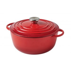 Емайлираният чугун е ценен и здрав материал, който е подходящ за всички начини на готвене. Особено препоръчван за дълги и бавни процеси на огън, както и за пържене. Чугунът е най-подходящият в кухнята заради способността си да задържа топлина ефективно – функция, подобрена от наличието на капак, за да задържа парата. Това са характеристиките, които откриваме в пълна степен в новата тенджера от Brandani. С яркочервен цвят и изключителна гъвкавост – за газови котлони, керамични котлони, както и традиционни или електрически фурни. Чугунената тенджера на Brandani подобрява вкуса, гарантира изключителни резултати при готвене и е не само практичена за използване, но и перфектена за показване: комбинация от функционалност и естетика, без която е невъзможно.